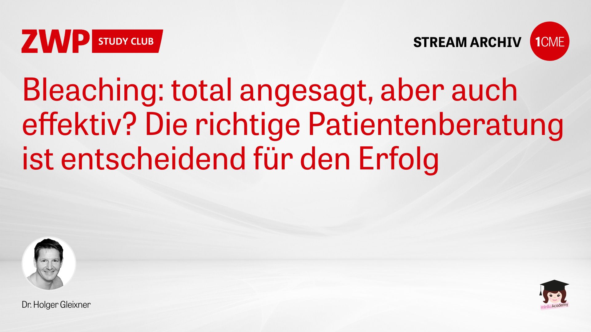 Hinweis: Alle interessierten Teilnehmenden erhalten nach dem Webinar ein kostenloses Bleaching Kit. Die URL zur Anforderung dafür wird im Webinar bekannt gegeben.
